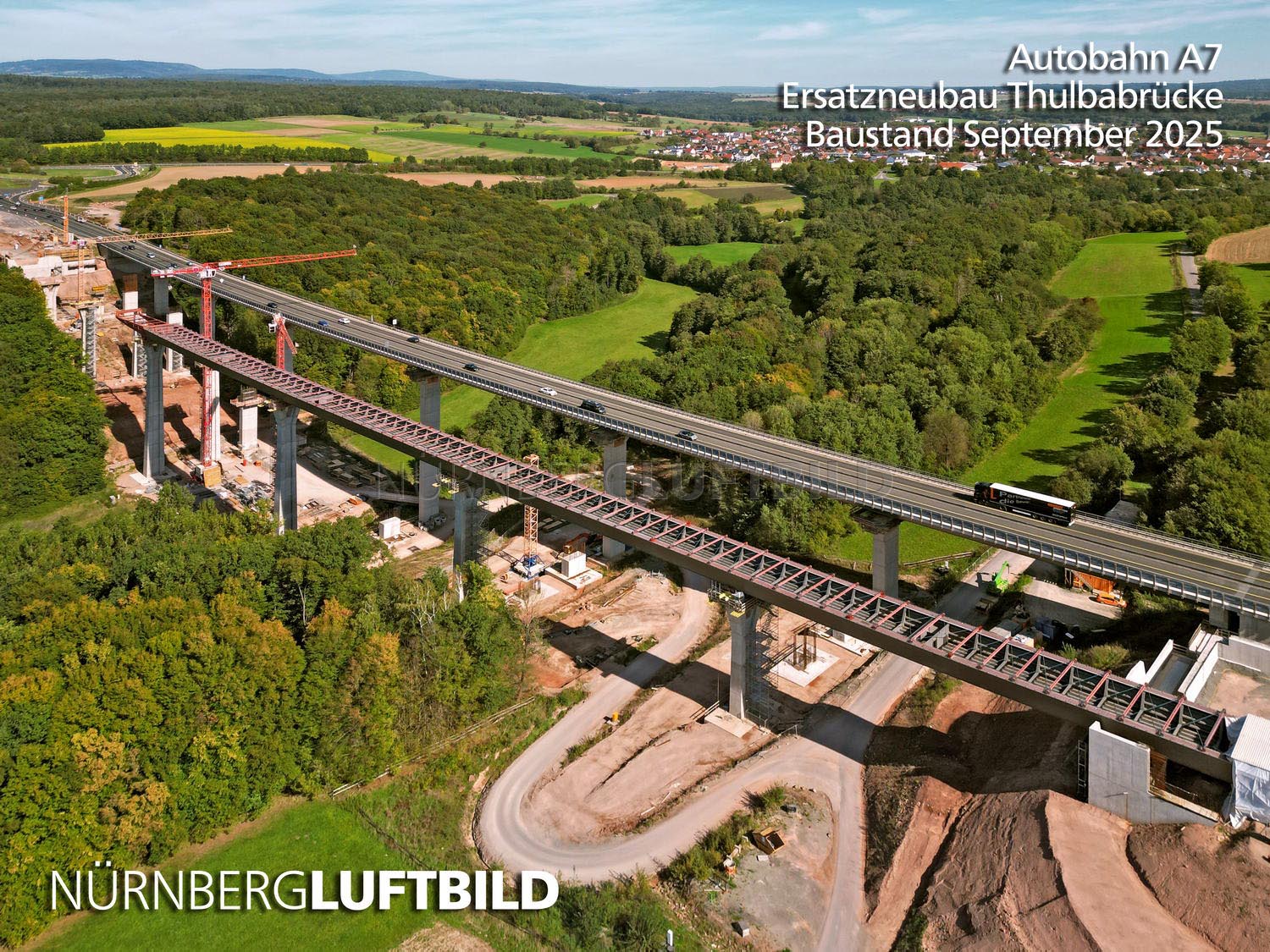 Thulbabrücke, Neubau an der Autobahn A7, Baustand September 2025